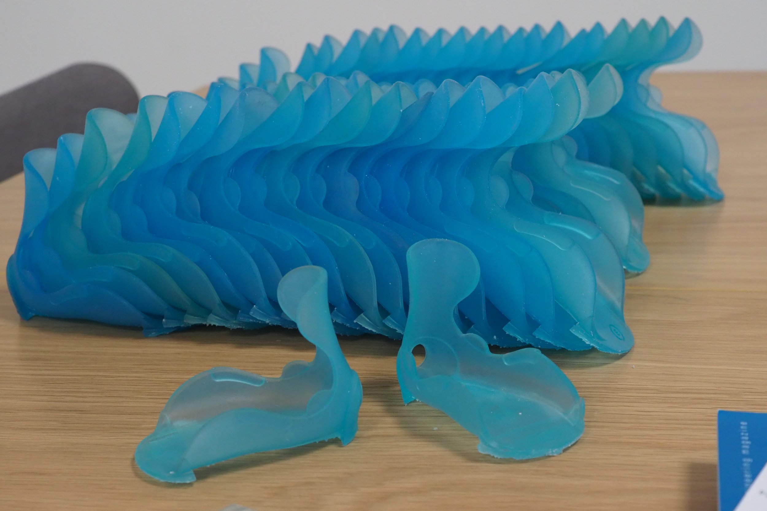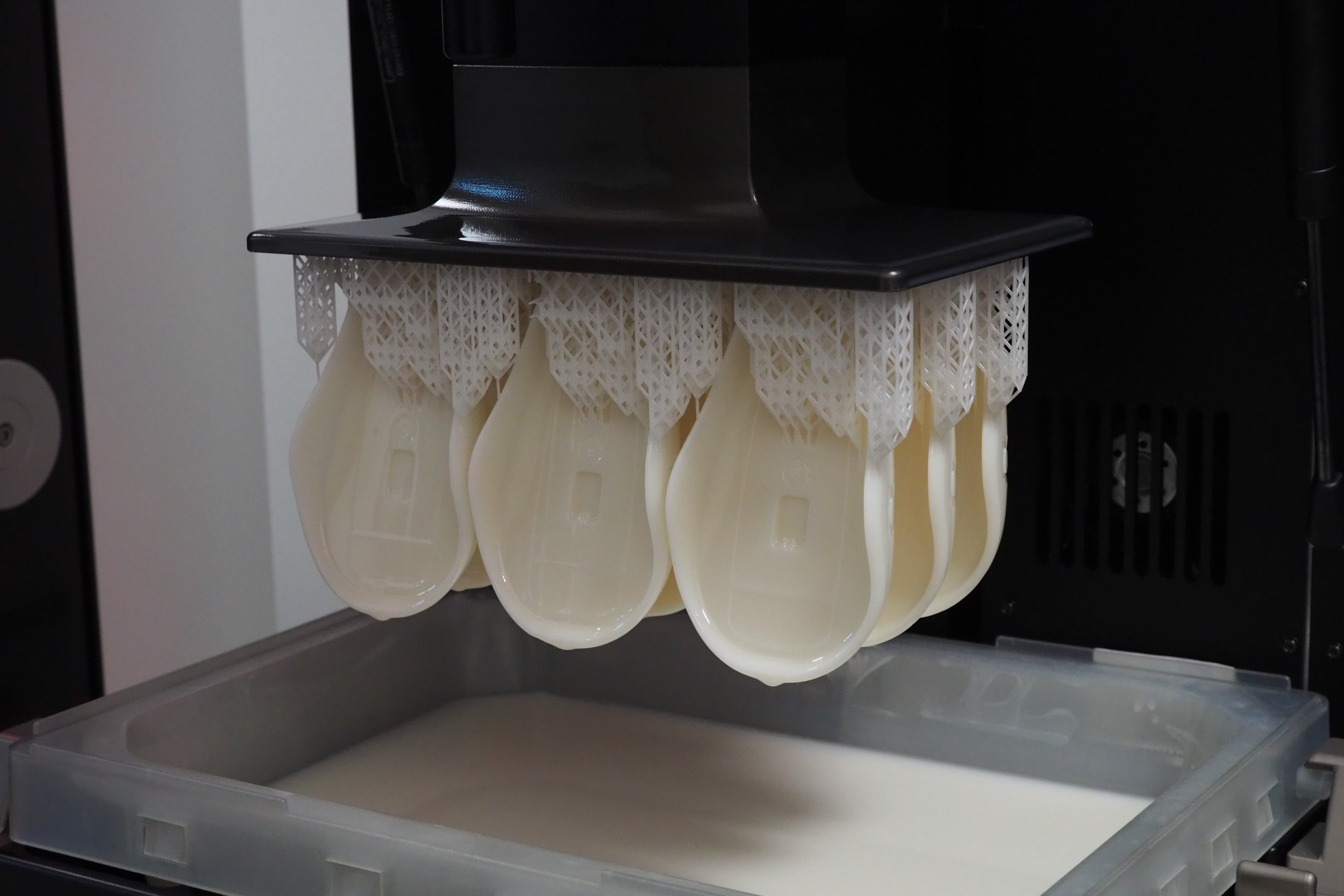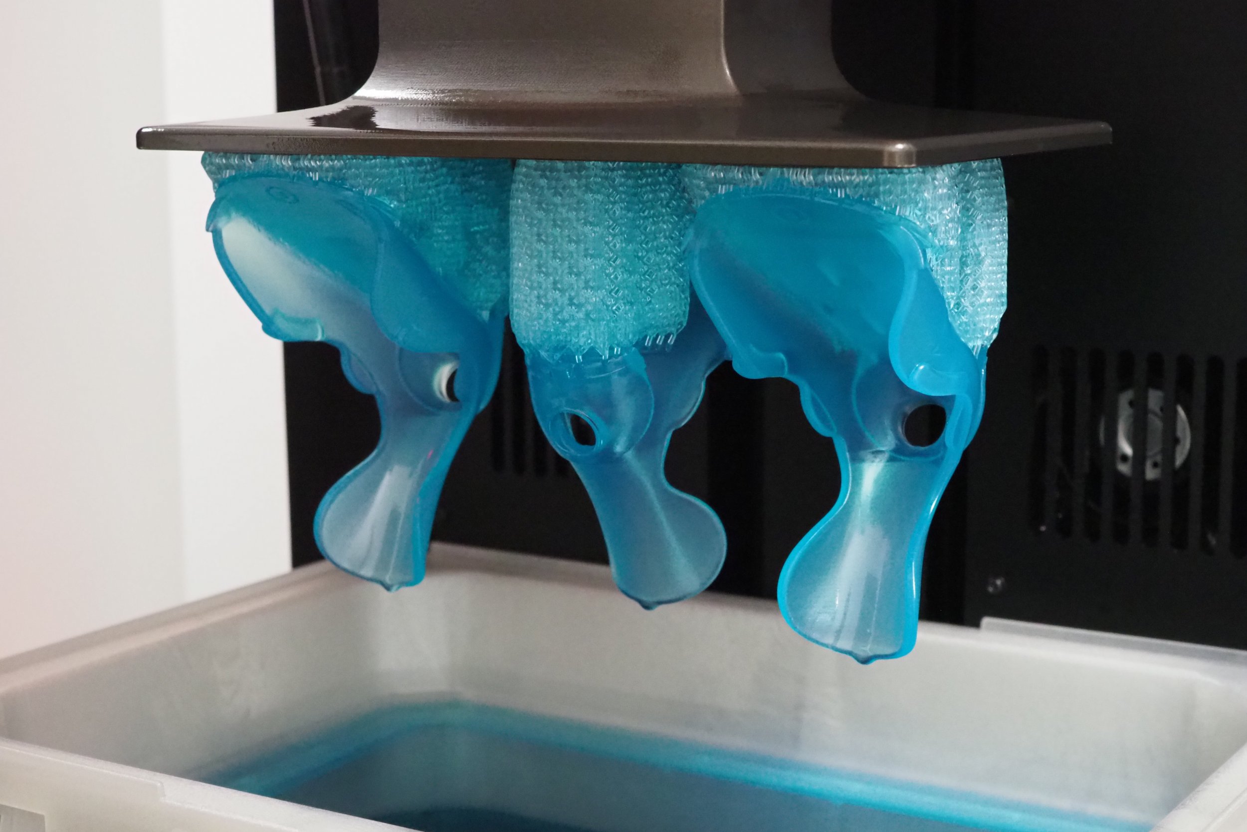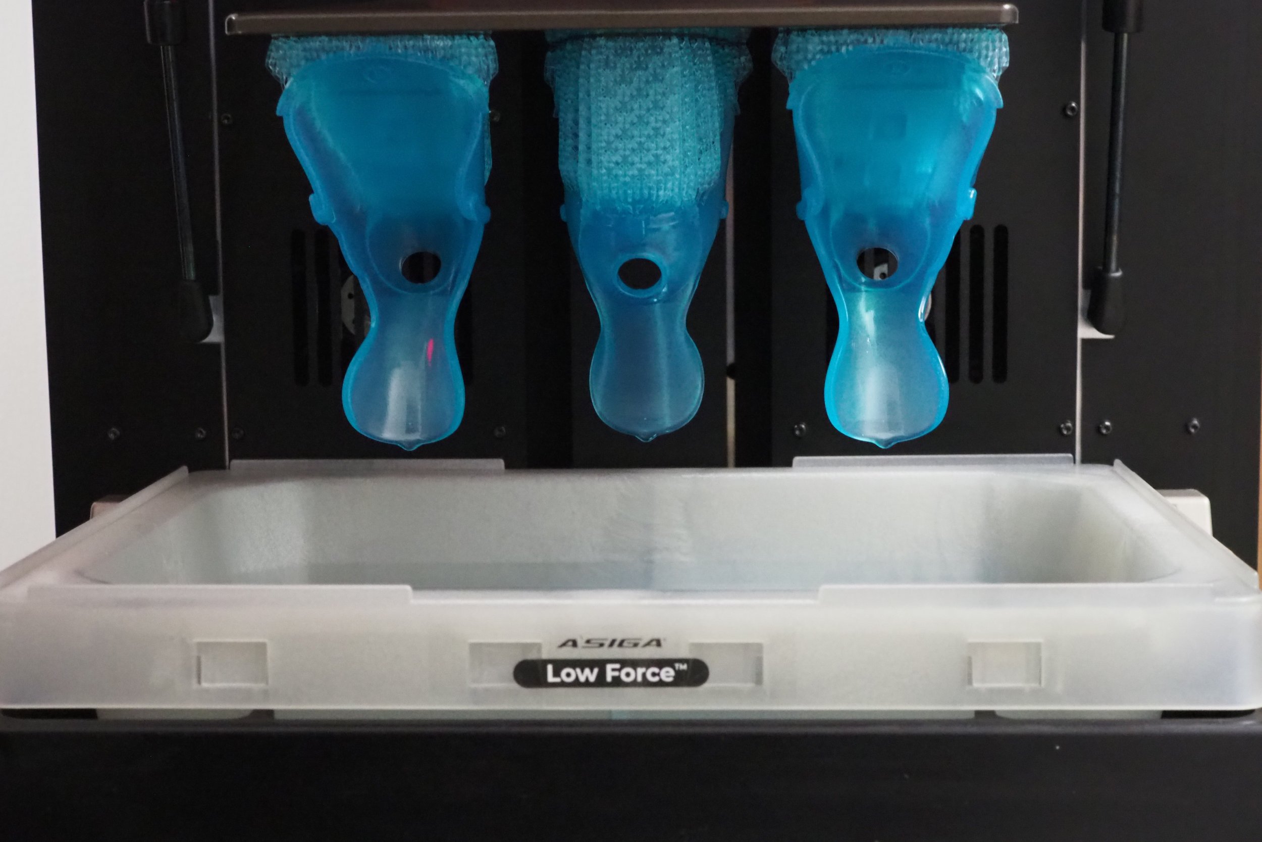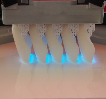 Pre špeciálne zdravotnícke využitie sme vyrobili funkčné diely ortopedickej pomôcky navrhnutej pre deti s DMO. Tlač prebiehala na 3D tlačiarni Asiga PRO 4K s využitím dvoch rôznych materiálov – biely diel z BASF ST45 pre pevnosť a konštrukčnú stabilitu, modrý diel z pružného BASF Ultracur3D FL300 s pigmentom pre vyšší komfort a flexibilitu. Výsledkom je mechanicky odolné, no zároveň ergonomické riešenie prispôsobené potrebám malých pacientov.