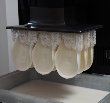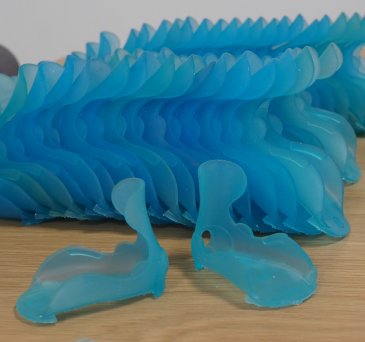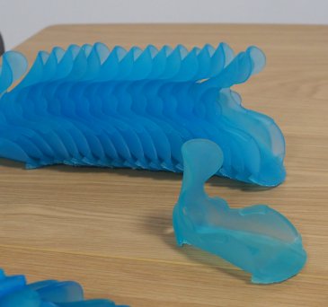 Použitý materiál: biela časť: BASF ST 45, modrá časť: BASF FL 300 s pigmentom